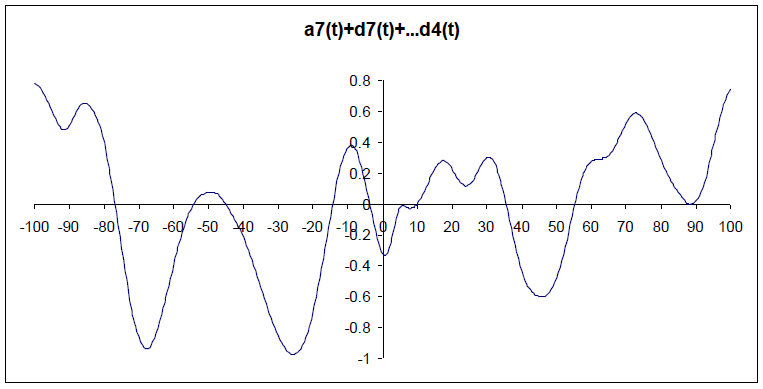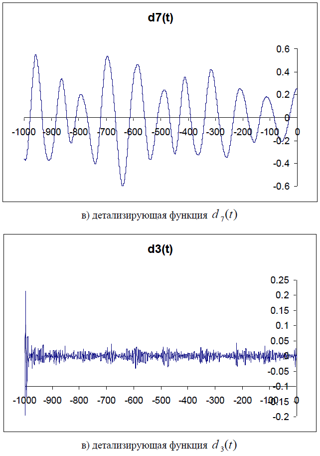 С целью иллюстрации метода прогнозирования на рисунке 3 представлены несколько так называемых аппроксимирующих и детализирующих составляющих вейвлет-разложения функции ОКД(t).