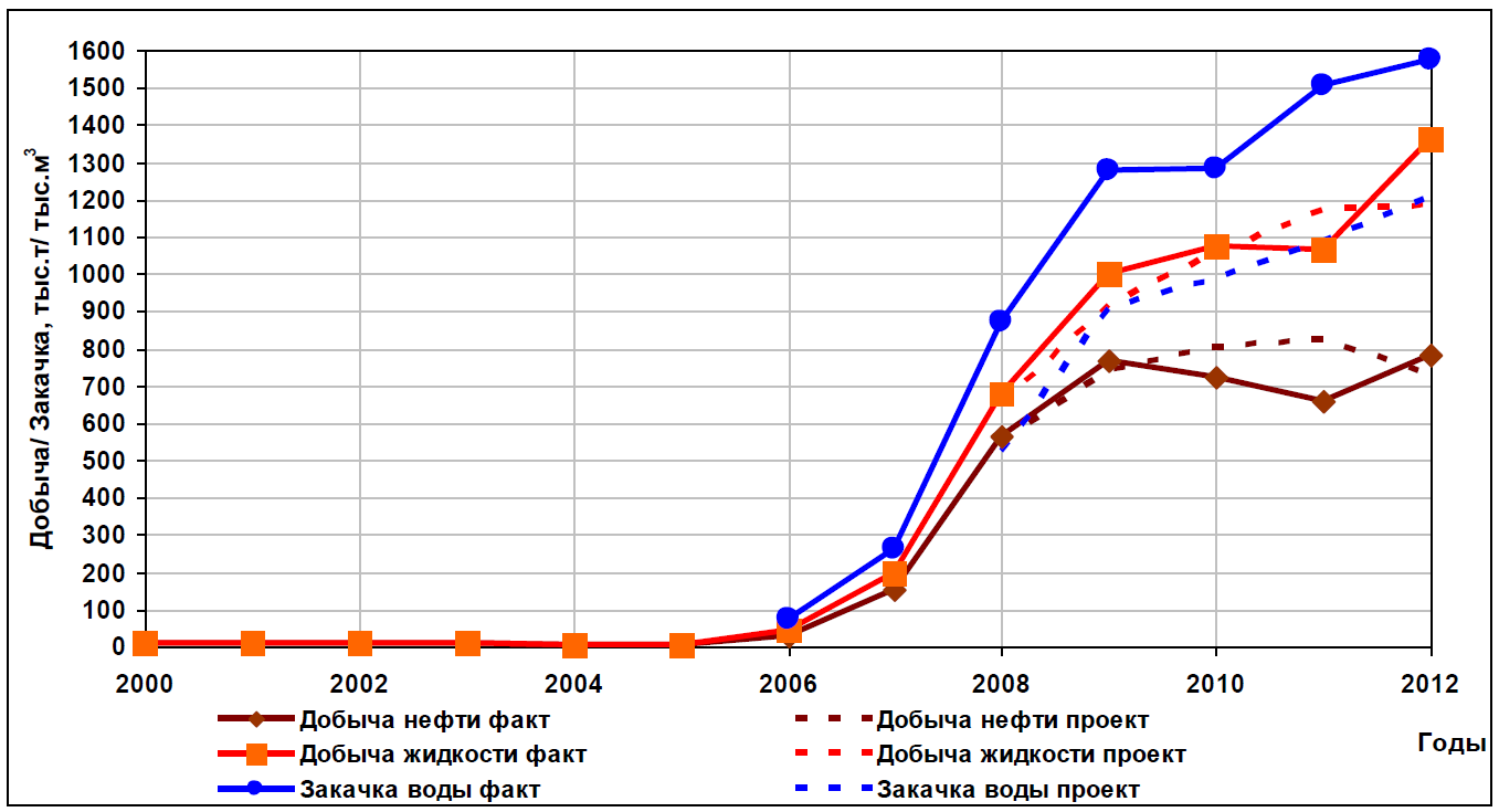 Рис. 1. Динамика основных показателей разработки Ай-Пимского месторождения