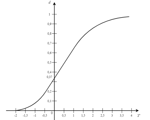 На графике d – значение функции желательности, Y'– кодированное значение частного параметра Y, т. е. его значение в условном масштабе.