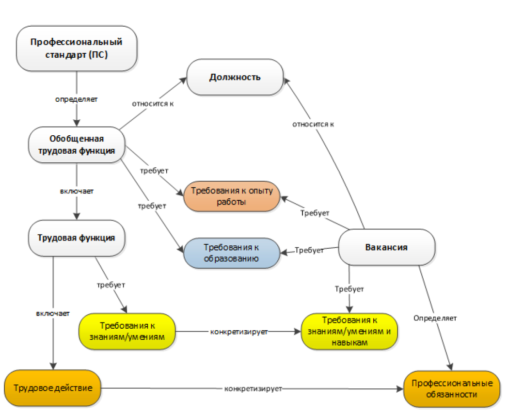 Рисунок 1 – Концептуальная модель связи сущностей между профессиональными стандартами и вакансиями