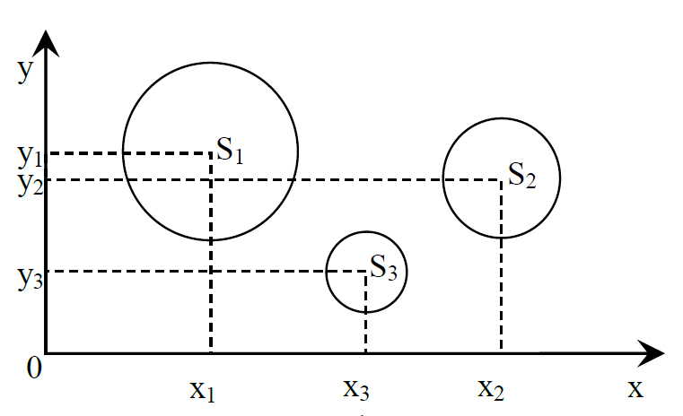 - Форма береговой линии озера может быть представлена уравнением окружности с координатами центров xi,yi и площадью si (i – порядковый номер озера).