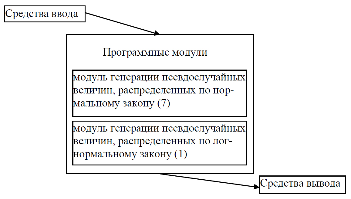 3) модуль генерации псевдослучайных величин, распределенных по логнормальному закону в соответствии с уравнением (1);