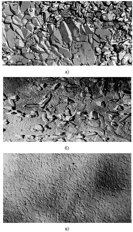 В образце с промежуточной толщиной слоя W–Ti ~0,08 мкм таких кристаллитов существенно меньше, причем их средний размер составляет 0,25–0,30 мкм (максимальный – 0,5 мкм, а минимальный – 0,15 мкм, рис. 6б). И, наконец, в образце с толщиной слоя W–Ti ~0,12 мкм такие кристаллиты вообще отсутствуют (рис. 8в).