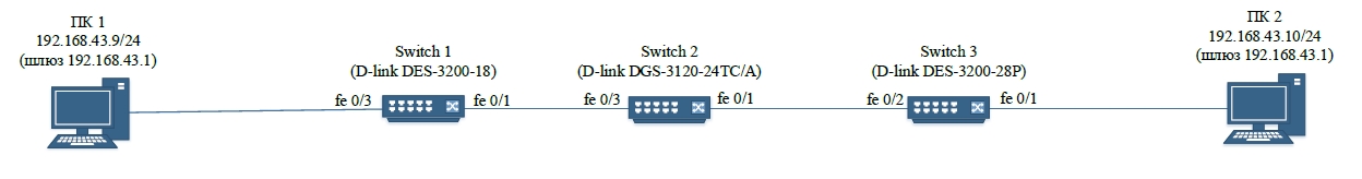 Рассмотрим сегмент СС СН, включающий в себя двух пользователей (элементы и ) и три сетевых коммутатора (). Схема такой сети представлена на рисунке 1.