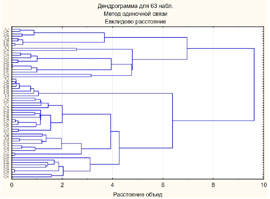 Результаты кластерного анализа при объединении множеств и представлены на рисунке 6.