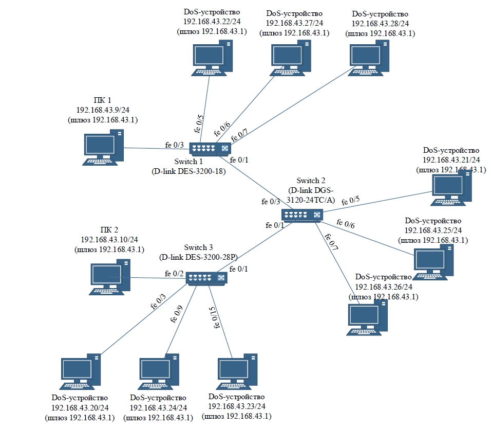 В качестве примера рассмотрим СС СН с подключением девяти нарушителей. Схема такой сети представлена на рисунке 7.