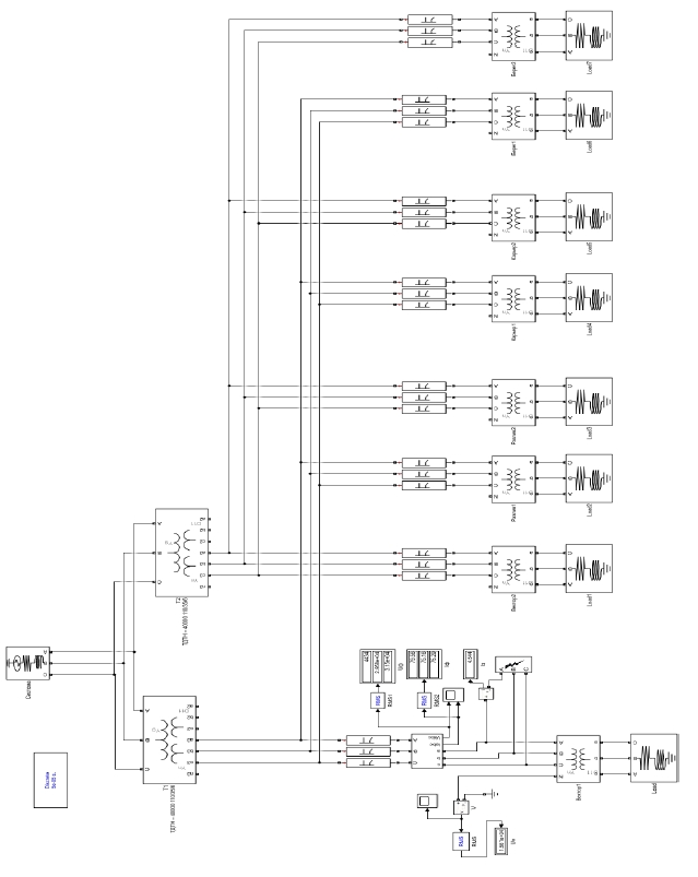 Рисунок 2 – Схема подстанции электрической сети с изолированной нейтралью в MATLAB Simulink