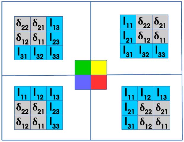 Основой обратного распространения ошибки по сверточному слою служит операция свертки. При передаче матрицы ошибок от слоя пулинга ко сверточному слою производится обратная свертка матрицы ошибок слоя пулинга с ядром матрицы по следующей схеме: