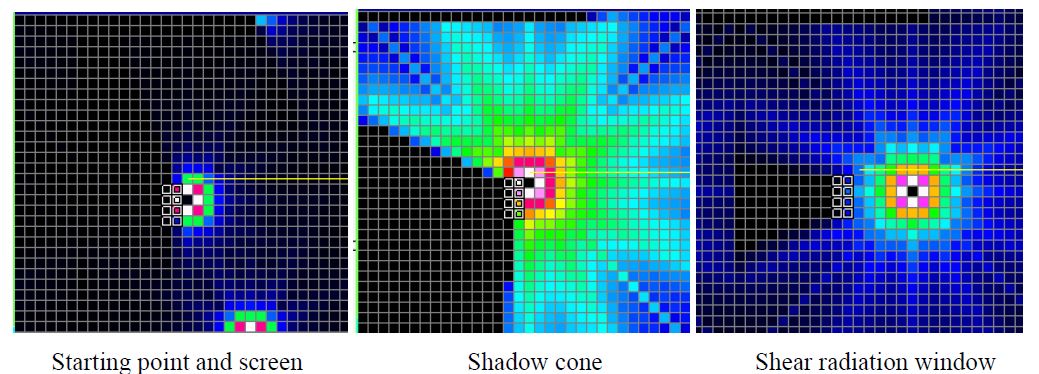 Figure 4. The sequence of formation of the shadow cone and the radiation window