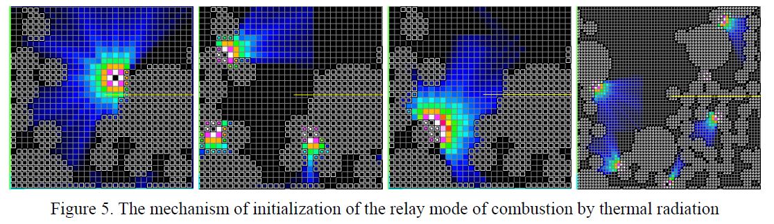 Figure 5. The mechanism of initialization of the relay mode of combustion by thermal radiation
