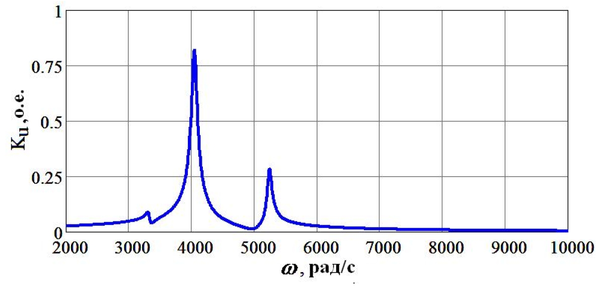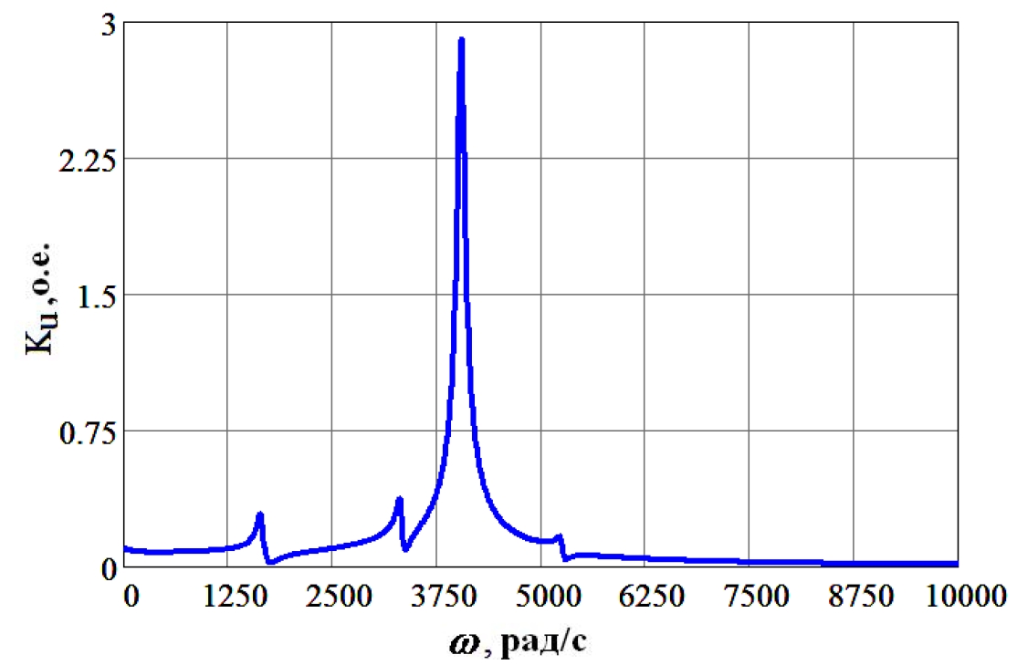 Из таблицы 2 и графиков (рисунки 4–7) видно, что резонансный режим будет наблюдаться при частотах 258 Гц (5 гармоника), 537 Гц (11 гармоника), 638 Гц (13 гармоника) и 844 Гц (17 гармоника). Иными словами, при наличии нелинейной нагрузки, генерирующей 5, 11, 13 и 17 гармонику в сеть, будет наблюдаться режим резонанса.