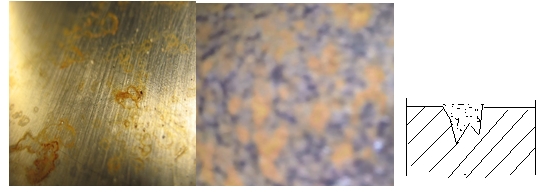 Поверхностный питтинг развивается не вглубь металла, а вширь и в дальнейшем образует выбоины в виде: