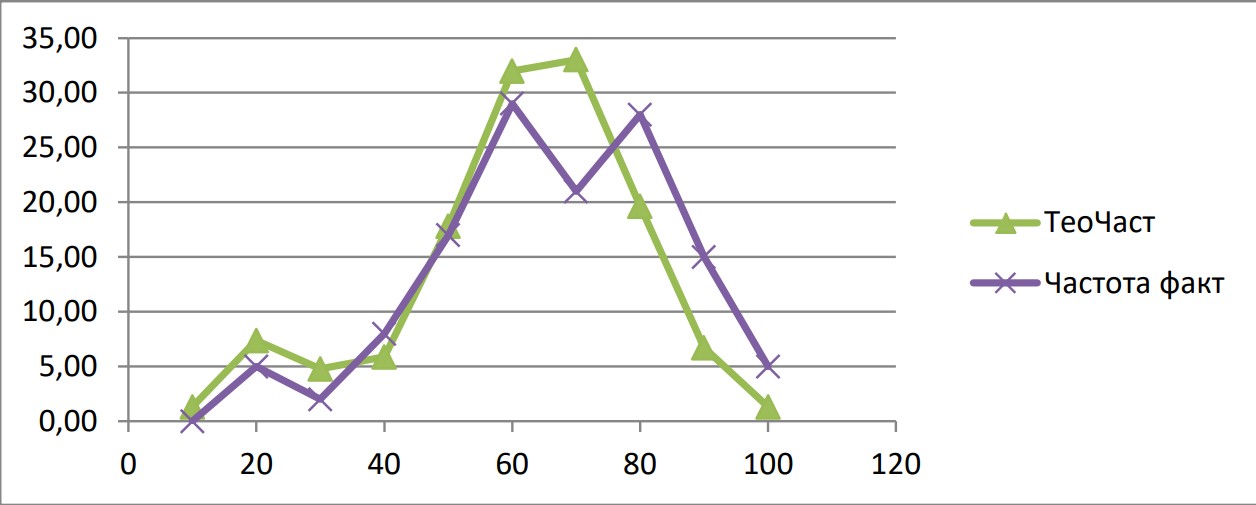 Рисунок 1 – Фактическое распределение результатов тестирования