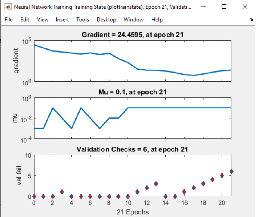 Как мы видим нейронная сеть обучилась за 21 эпоху, дальнейшее обучение было нецелесообразно. Из графика 2 видно, что наилучшее значение валидации было на 15 эпохе.