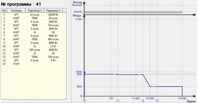 Мощность лазерного излучения при втором проходе (мощность, необходимая для расплавления проволоки и создания «валика» поверх шва) является неизменной и равна 4 кВт (рисунок 4).