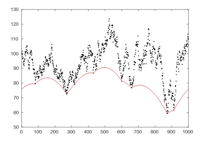 На рисунках 1, 2 приведены примеры преобразования Лежандра временного ряда P0. На рис. 1 P1=P0* – нижний «выпуклый» огибающего ряда P0.