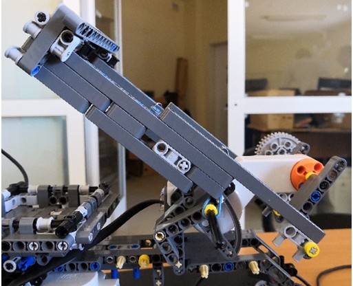 Часть «Лапа» собрана из мотора для движения, двух балок по бокам для фиксации кубика в пространстве, задней перегородки движения кубика в крайнюю позицию, передней балки и двух двухмодульных фиксаторов для захвата грани кубика, во время переворота, рисунок 2.