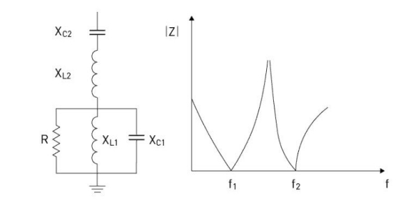 На рисунке 2 показана принципиальная схема и типичная характеристика полного сопротивления фильтра с двойной настройкой.
