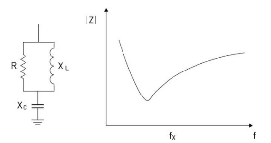 На рисунке 1 показана принципиальная схема и типичная характеристика полного сопротивления для однонастраиваемого фильтра.