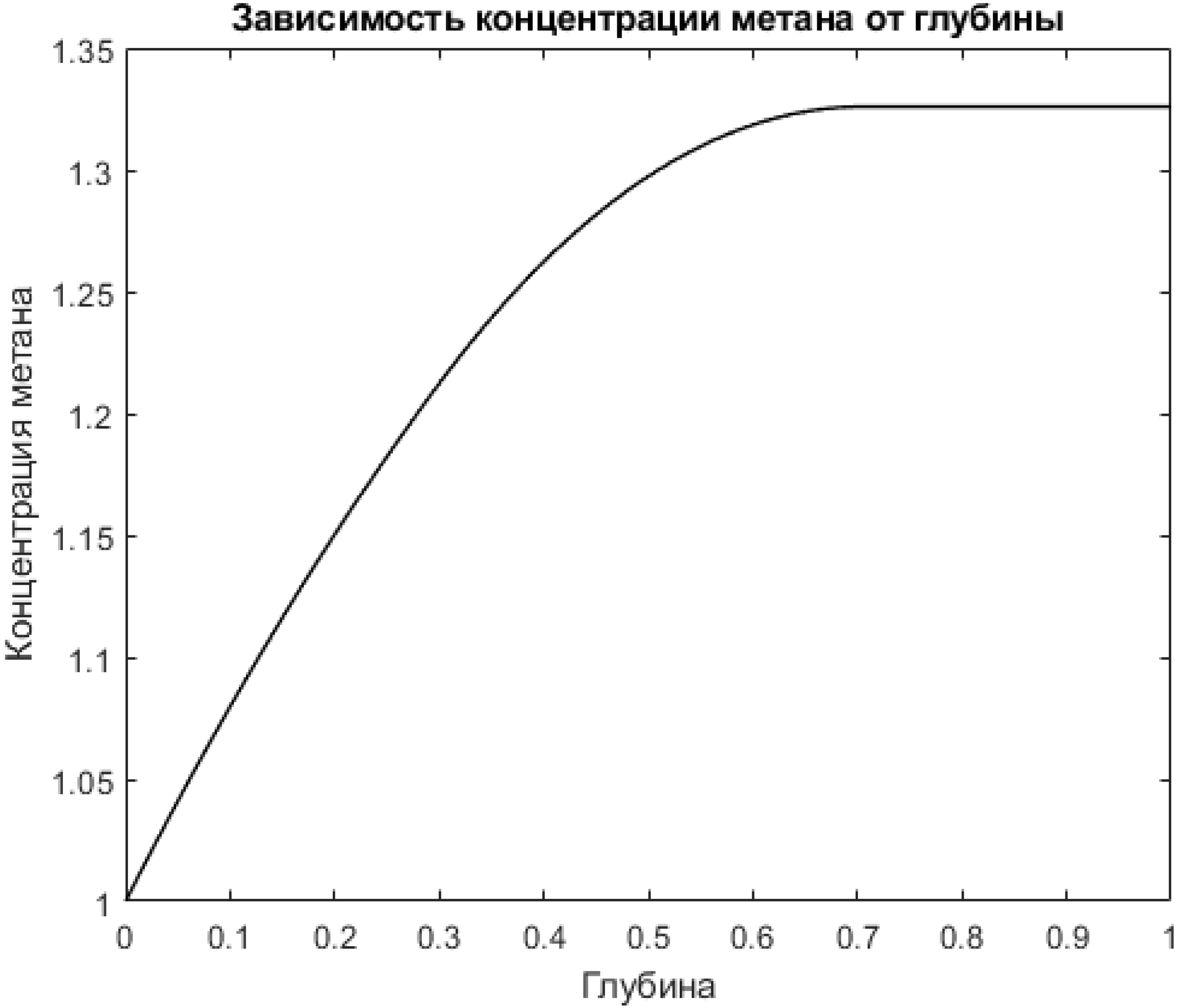 - c0=1 – значение концентрации метана на поверхности почвы.