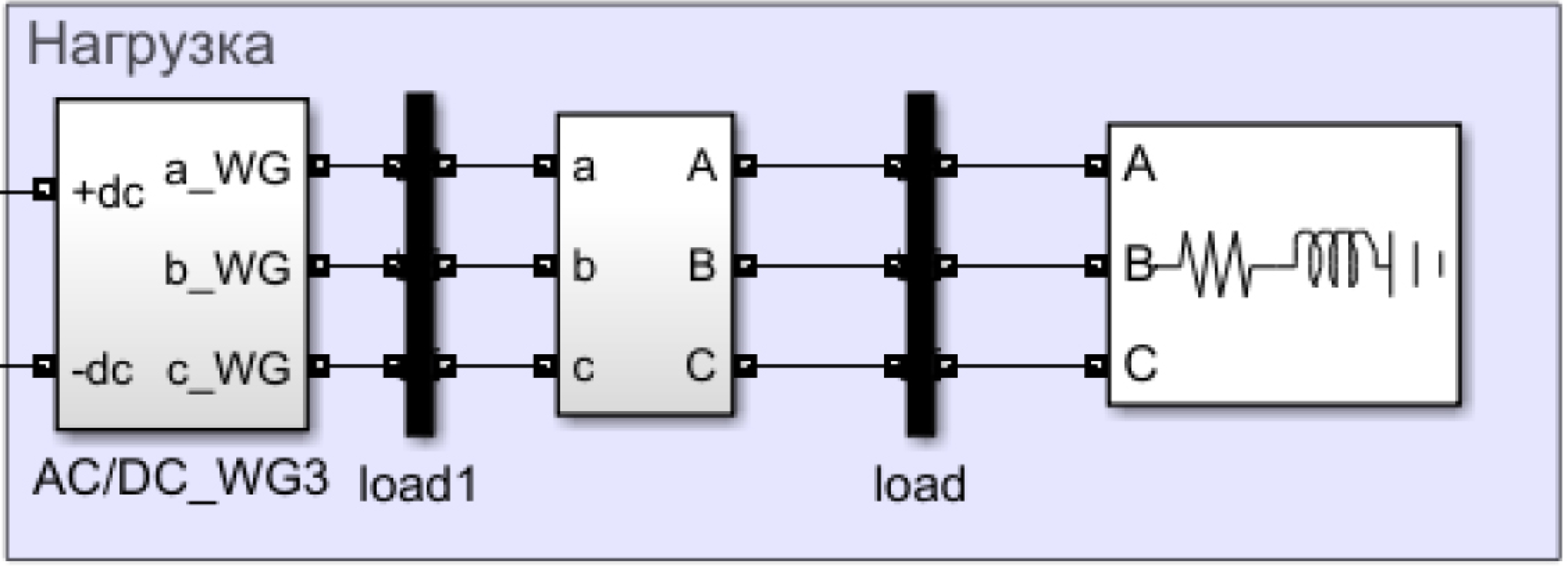 Для моделирования нагрузки был использован блок «Three-phase load», схема которого показана на рисунке 10.