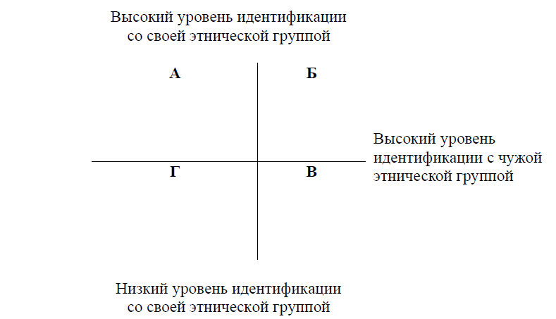 А – моноэтническая идентификация со своей этнической группой;