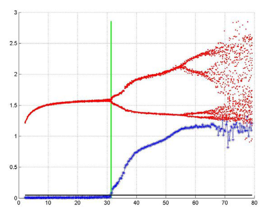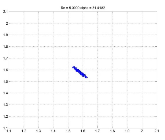 Полученные данные представляются в виде отображения Пуанкаре. Диаграмма, полученная в момент бифуркации, представлена на рисунке 4.