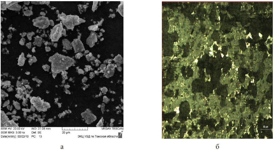 Размеры частиц определяли по электронным фотографиям. Микрофотографию частиц, полученных методом СВ-синтеза получали на микроскопе Zeiss Axiovert 200 MAT, на СЭМ на электронном микроскопе «VEGA II LMU» фирмы «TESCAN» (программный комплекс «Vega TC») изображение частиц МС (рисунок 2).