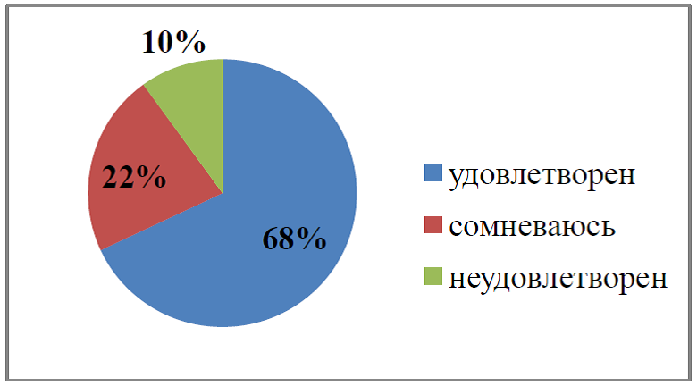 Не удовлетворены выбором профессии 10 % опрошенных студентов, высказали сомнения в выборе профессии 22 %, рис. 1.