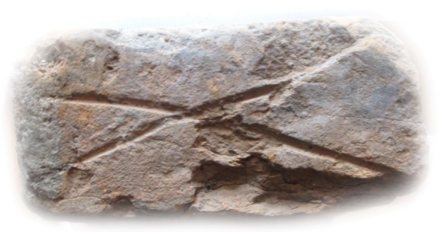 При обследовании памятников истории и культуры XVII–XVIII веков была обнаружена одна, часто повторяющаяся метка. Данная метка была найдена на объектах истории и культуры в Тюменской и Курганской областях (Рис. 2). Ввиду того, что в данный период времени мастеров-каменщиков в Сибири было очень мало и они переходили из одной местности в другую в поисках работы, не исключено, что подобные метки ставили мастера при производстве кирпичей в соседних Свердловской и Челябинской областях. Назначение метки может быть различно: от простой количественной маркировки (например, могли маркировать каждый сотый или тысячный кирпич в партии) до определения усадки сырца при сушке и обжиге или других технологических параметров. Возможно, что эта метка выполняла двойственную функцию: количественную и технологическую одновременно.