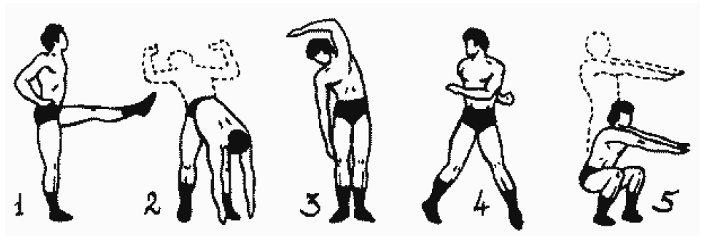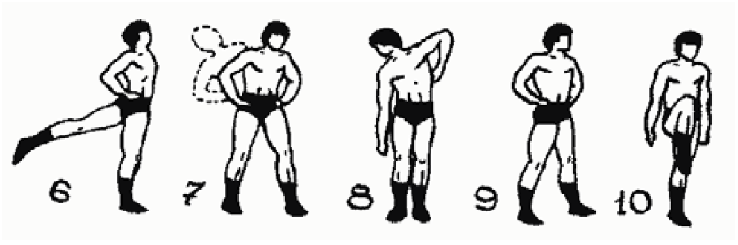 Упражнения первой степени – первые пять упражнений выполняются медленно, следующие пять упражнений выполняются быстро.