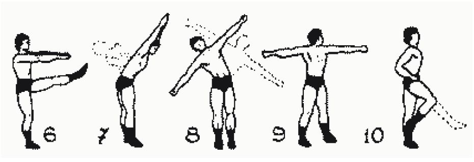 Упражнения второй степени – первые пять упражнений выполняются медленно, следующие пять упражнений выполняются быстро.