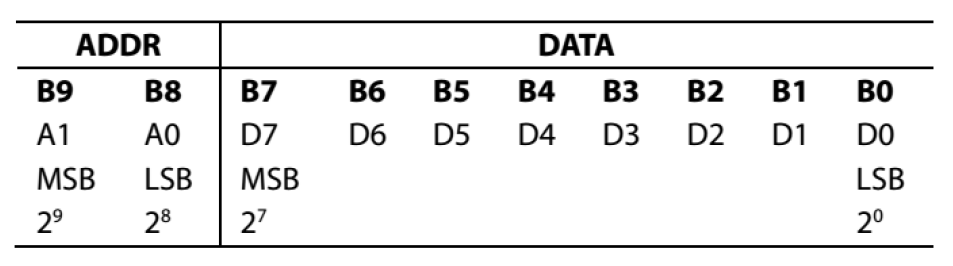 Рисунок 3 – Формат данных цифровых потенциометров AD8402 интерфейса SPI