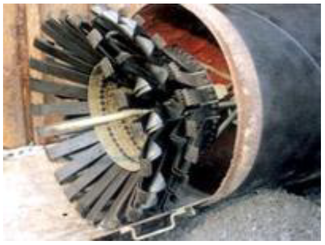 Основным методом очистки внутренней поверхности НКТ от парафинов является механический, выполняемый спуском и подъемом скребков с помощью ручных лебедок. Рекомендуются к применению скребки типа «Кыргач-5», «Кыргач-6» («Татнипинефть») (рис. 5).