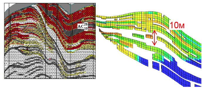 Рисунок 2 – Часть пласта, показывающая клиноформное строение и расчлененность нижней части разреза пласта Y