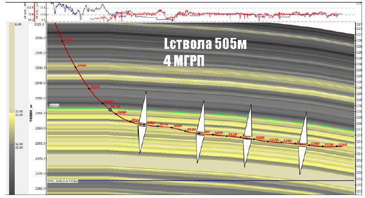 3. направление горизонтального участка скважины и его длину уточнять на основе текущего анализа геологического строения;