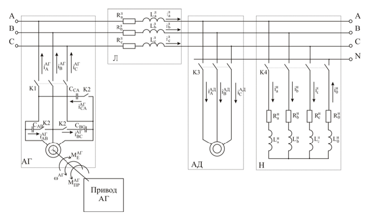 Математическая модель рассматриваемой электроэнергетической системы на базе АГ будет иметь следующий вид: