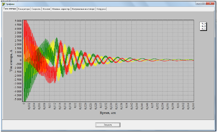 Рисунок 7 – Результаты расчётов программы «As_G»: закон изменения токов статора АГ