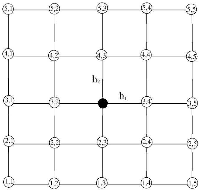 Для обработки одного из цветовых каналов тестового изображения (рис. 2) определим размер окна усреднения размером пикселей, а именно в два пикселя по сторонам от рассматриваемой точки. Используемая сетка представлена на рисунке 3.
