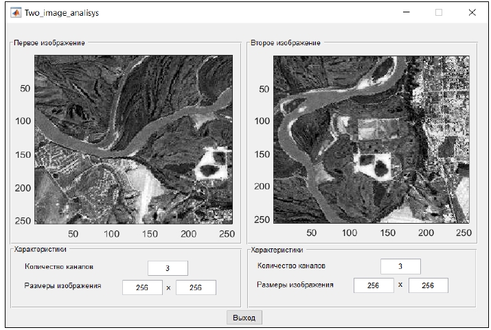 В качестве иллюстрации (см. рис. 3), в данной работе было выбрано два изображения одной местности, отличающиеся между собой углом разворота и сдвигом по горизонтали.