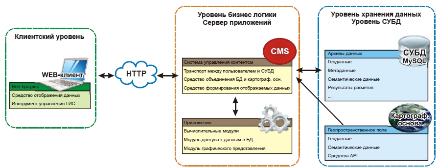 - Спроектирован и реализован программный модуль, осуществляющий классификацию данных на основании разработанных подходов и алгоритмов классификации данных. Произведена интеграция модуля в разработанную ГИС-систему. На рисунке 2 представлена структурно-функциональная схема геоинформационной системы для МГН в которой отражены элементы и модули ГИС.