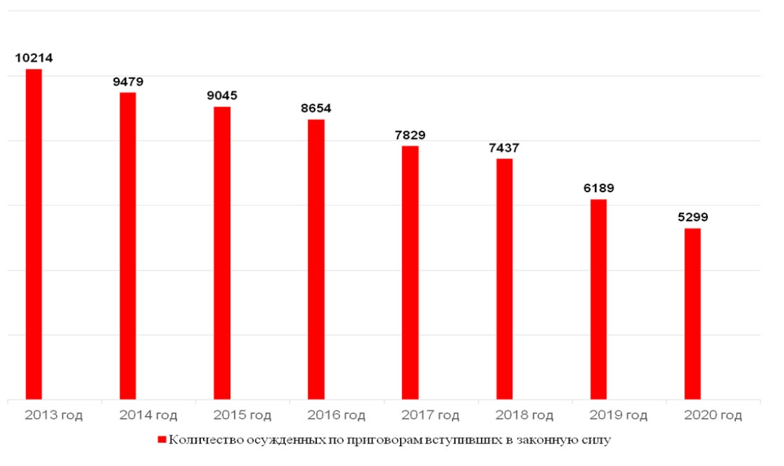 Рисунок 3 – Количественные показатели осужденных по приговорам за экологические преступления в России за 2013–2020 гг., вступившим в законную силу