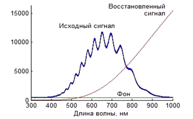 Рисунок 3. Восстановление теплового спектра объектапо калибровочным данным спектрального пирометра