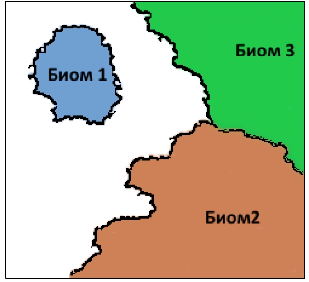 - Биомный подход. Речь идет об интерфейсе, где можно было бы определить области (далее биомы), границы между ними и собственные параметры генерации (рис. 1).
