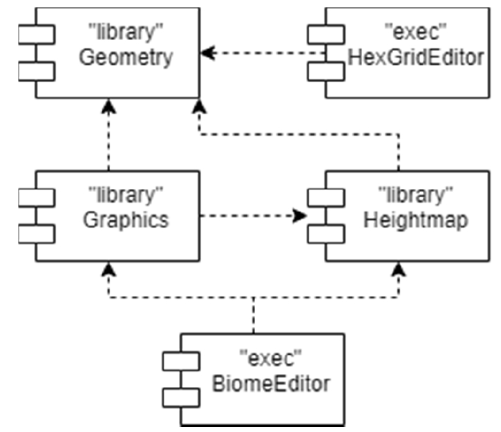 Компонент «Graphics» содержит графический функционал трехмерной графики, модуль отображения ландшафта и шестиугольной сетки.