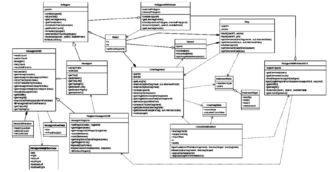 Класс «PolygonWithHolesGrid» описывает сетку полигонов, основанную на сетке биомов класса «RegionHexagonGrid».