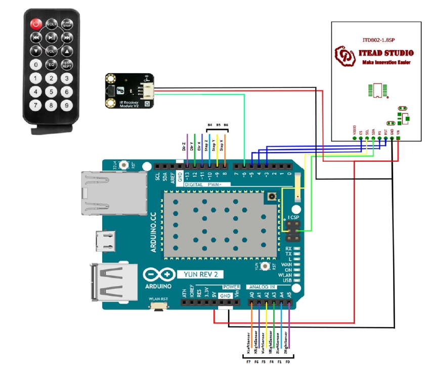 Рисунок 3 – Схема подключения элементов системы к микроконтроллеру Arduino Yun 2