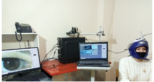Жесткая связь видеокамеры с головой позволяет избежать искажений трека внимания и облегчает обработку изображений. Анализ полученных результатов осуществлялись в два этапа. Препарирование изображений, обработка и оконтуривание зрачков проводилось с помощью программы ImageJ. Визуализация результатов была проведена в программе Origin19.