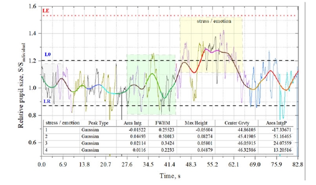 Этот факт позволил систематизировать пупиллограммы по категориям, относя их к одному из уровней: калибровочному L0, распознавания LR, состояние психологического напряжения/эмоции LE. Разбиение на уровни индивидуально для каждого человека.
