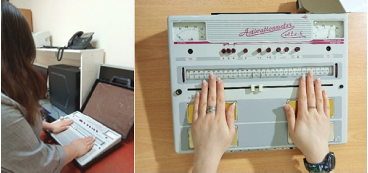 Измерение психоэмоционального состояния проводили с помощью активациометра, регистрирующего кожно-гальваническоую реакцию (КГР). Использовалась стандартная методика [7].